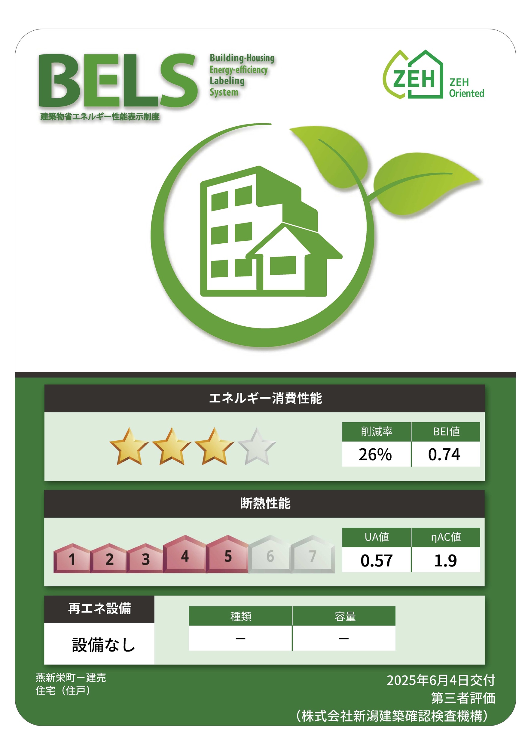※BELS/建築物省エネ基準適合認定書あり