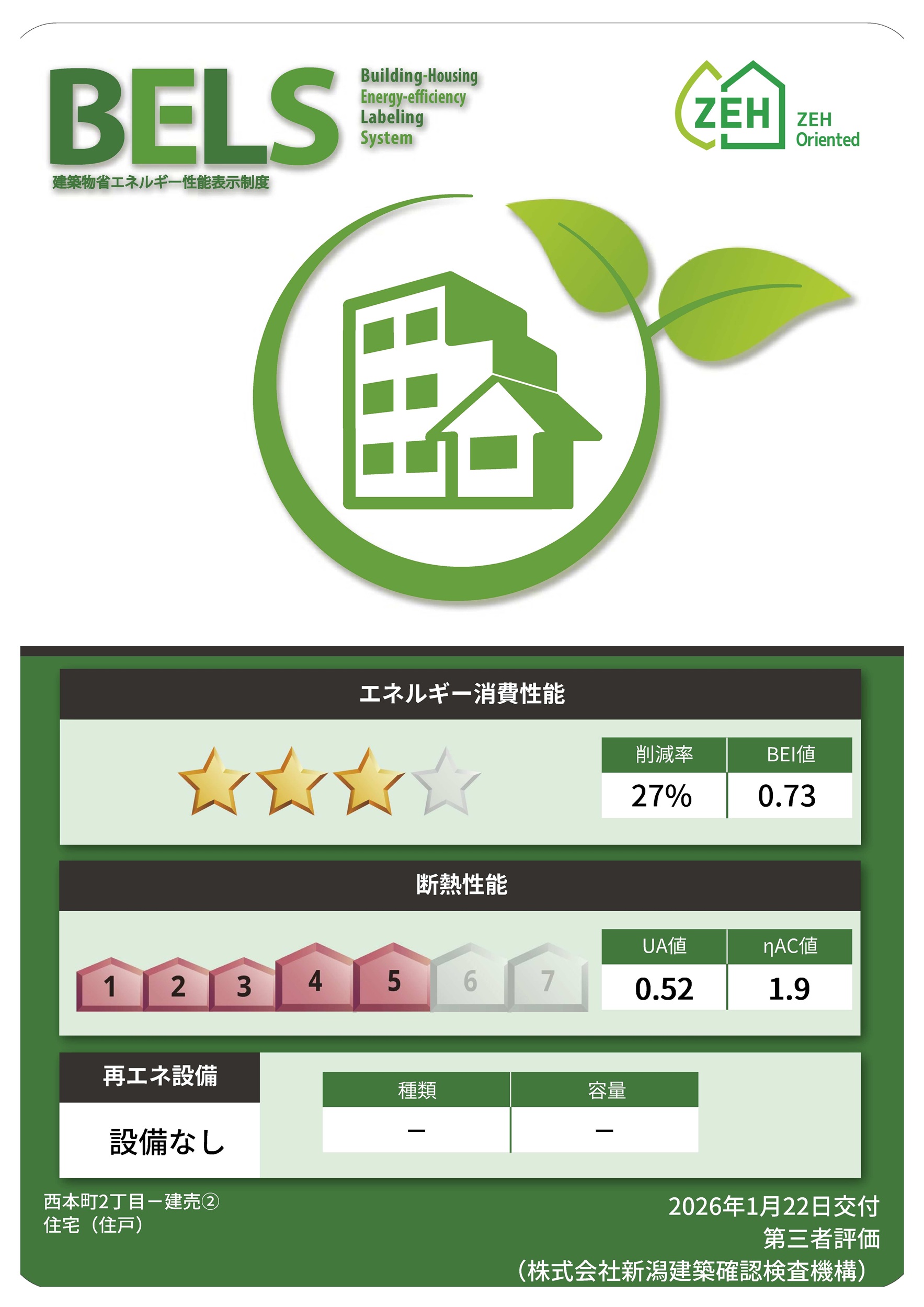 ※BELS/建築物省エネ基準適合認定書あり