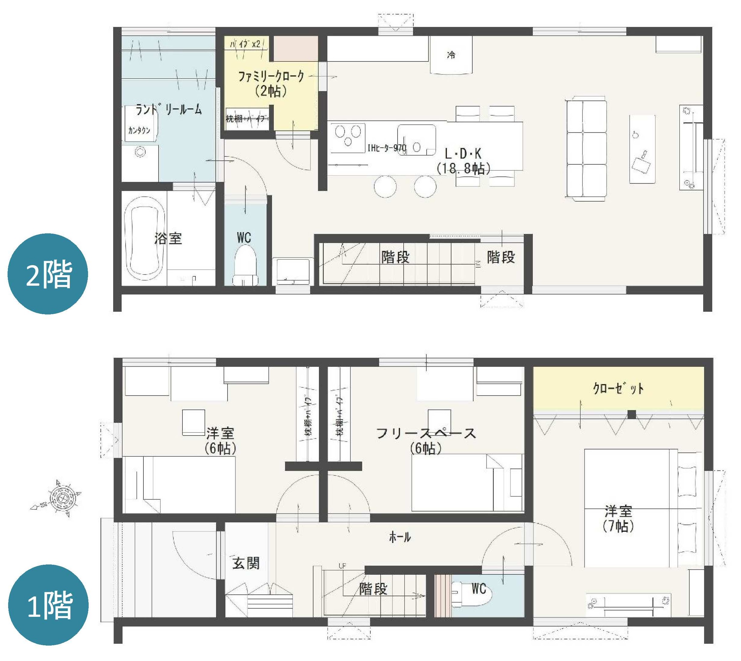 2階LDK18.8帖/対面キッチン