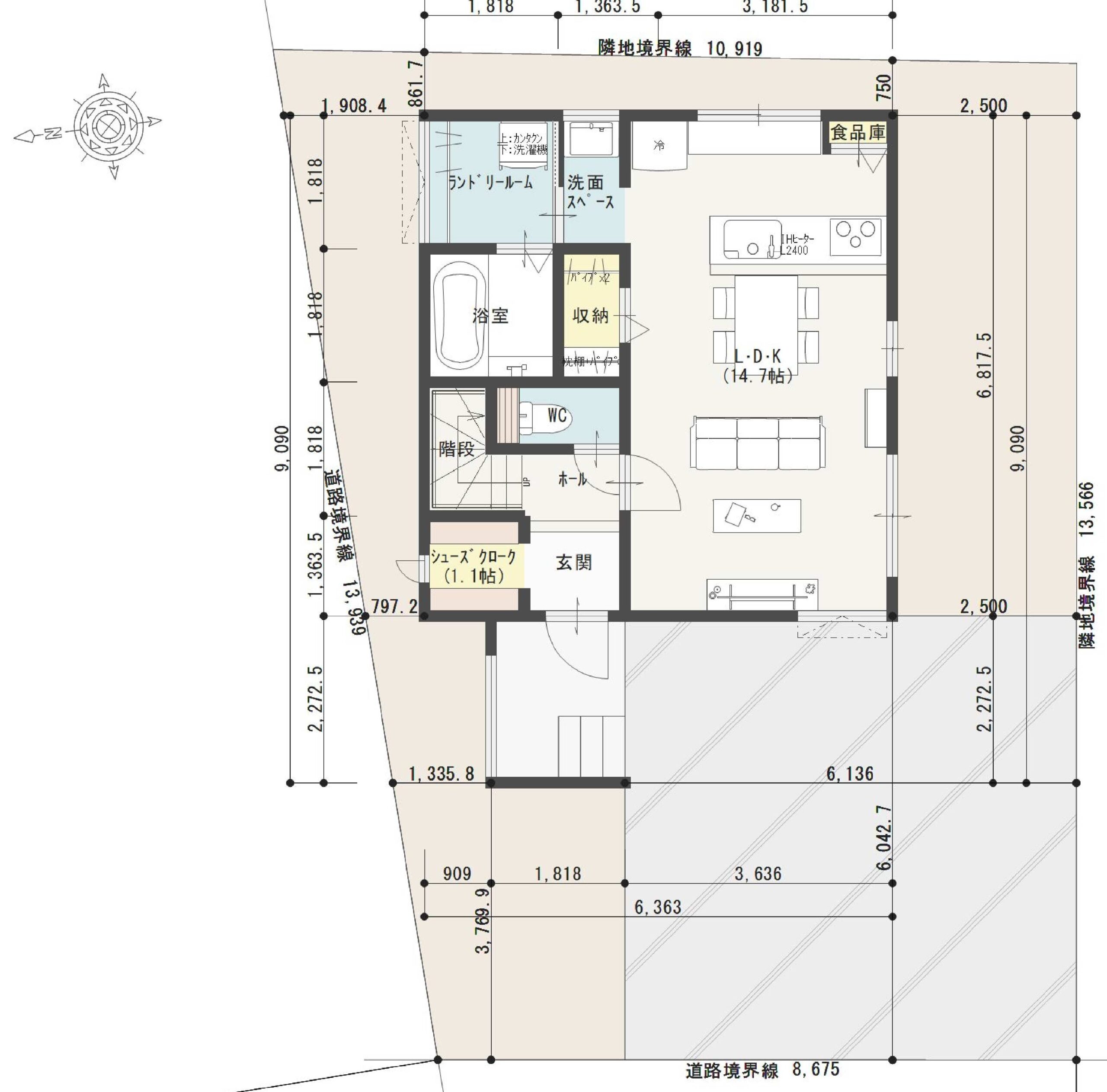 - 西側:市道 4.9m、北側:市道 22m(2方向とも消雪パイプあり)